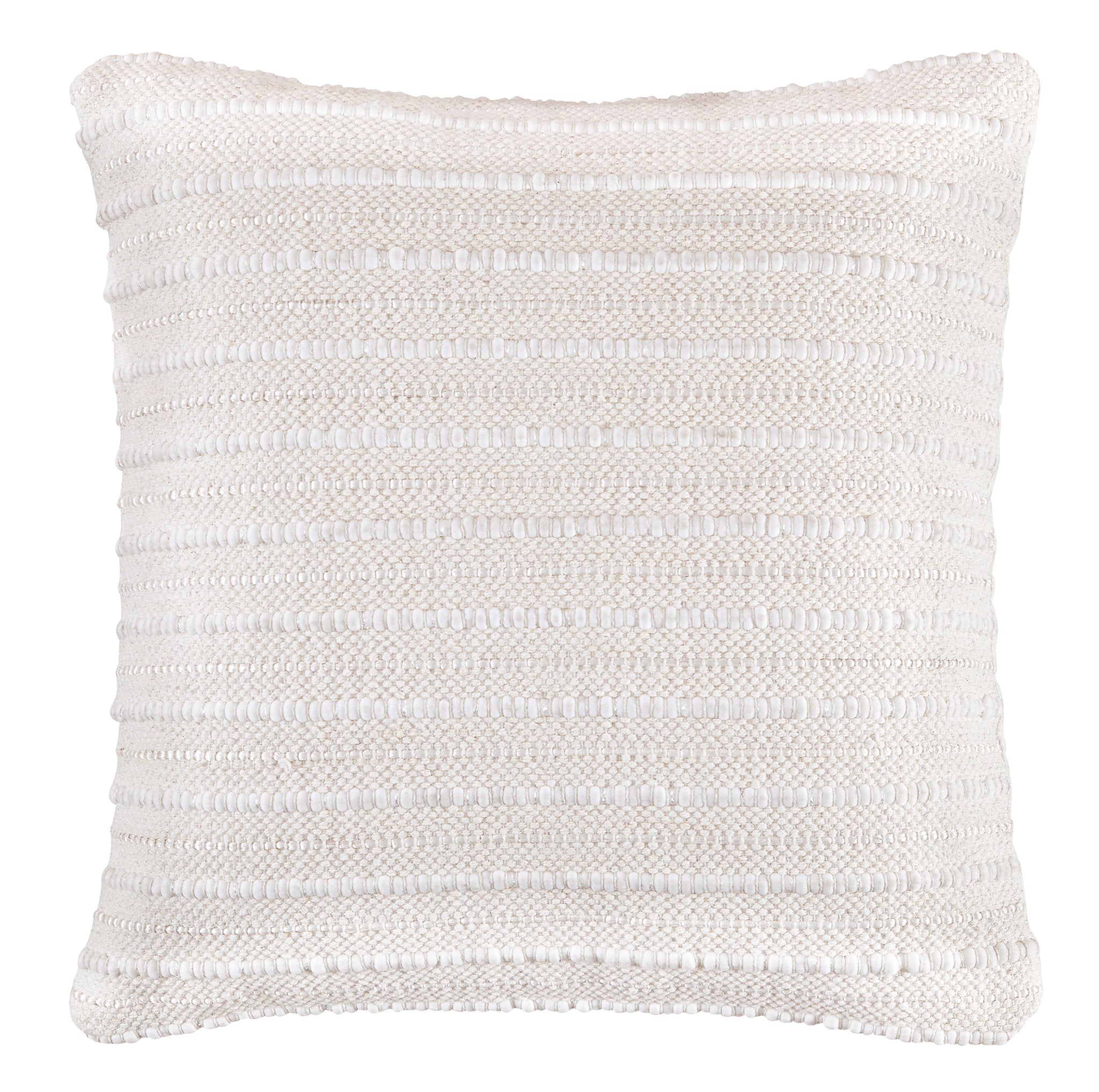 Delighting with handwoven details, this exceptionally versatile accent pillow in cream is truly a dream. Removable, zippered cover makes cleaning a breeze. Hand woven with stripe design in cream. Solid reverse in cream. Cotton/polyester cover. Zipper closure. Fiber filled. Spot clean only.