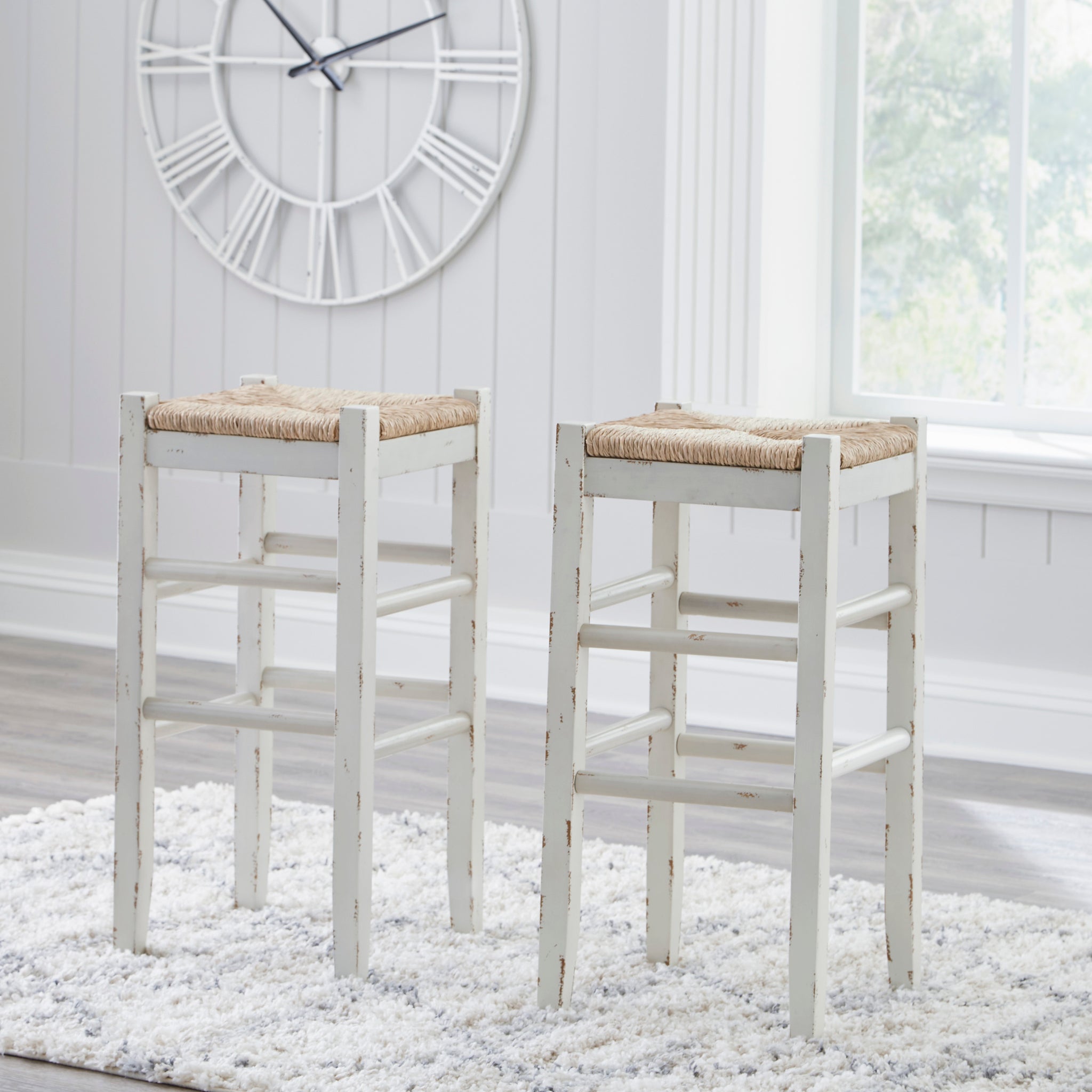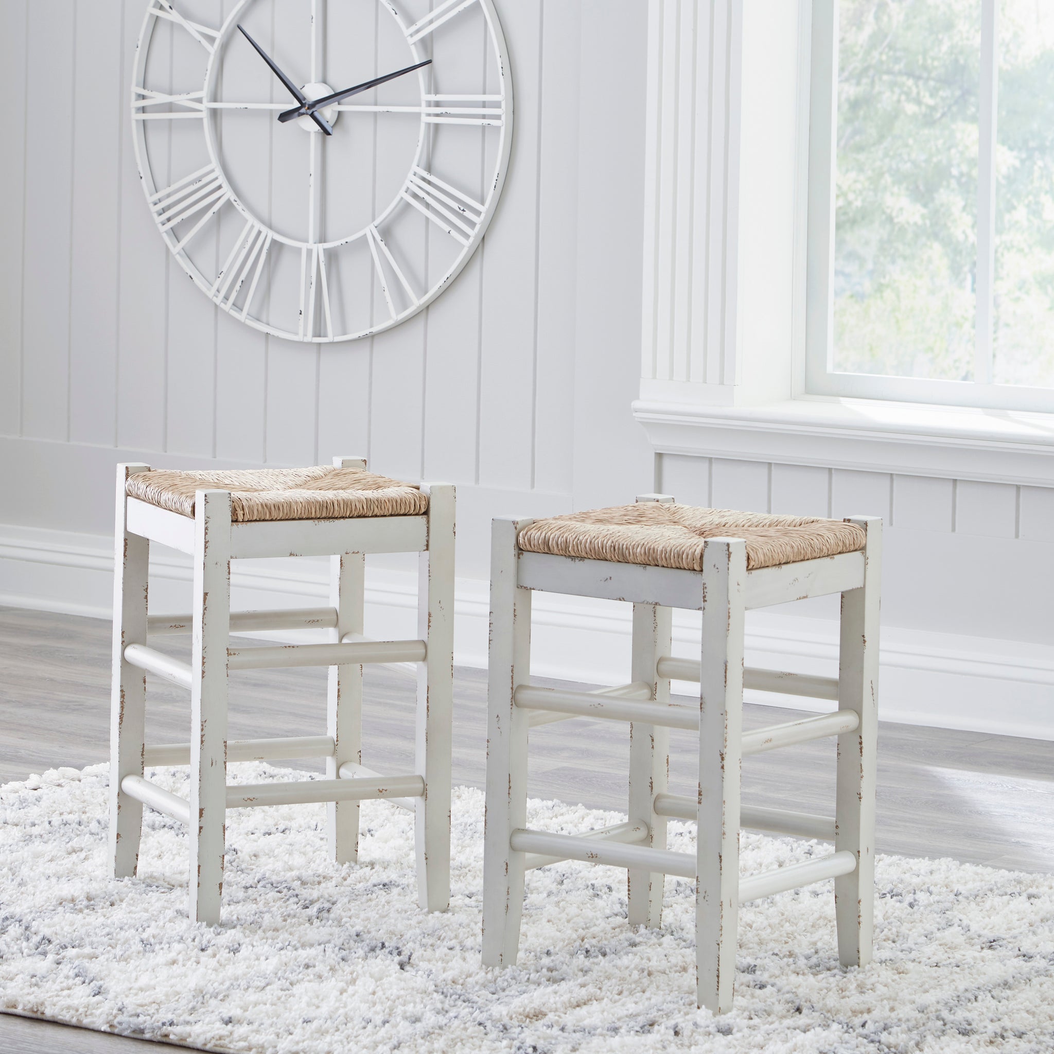 Bring the vintage casual vibe you love to the kitchen with this counter height bar stool. A stylish seating solution in a white rubbed-through finish, this charming stool completes your dining space with ease. The woven seagrass seat and wood stretchers create an effortlessly beautiful look with endless possibilities.