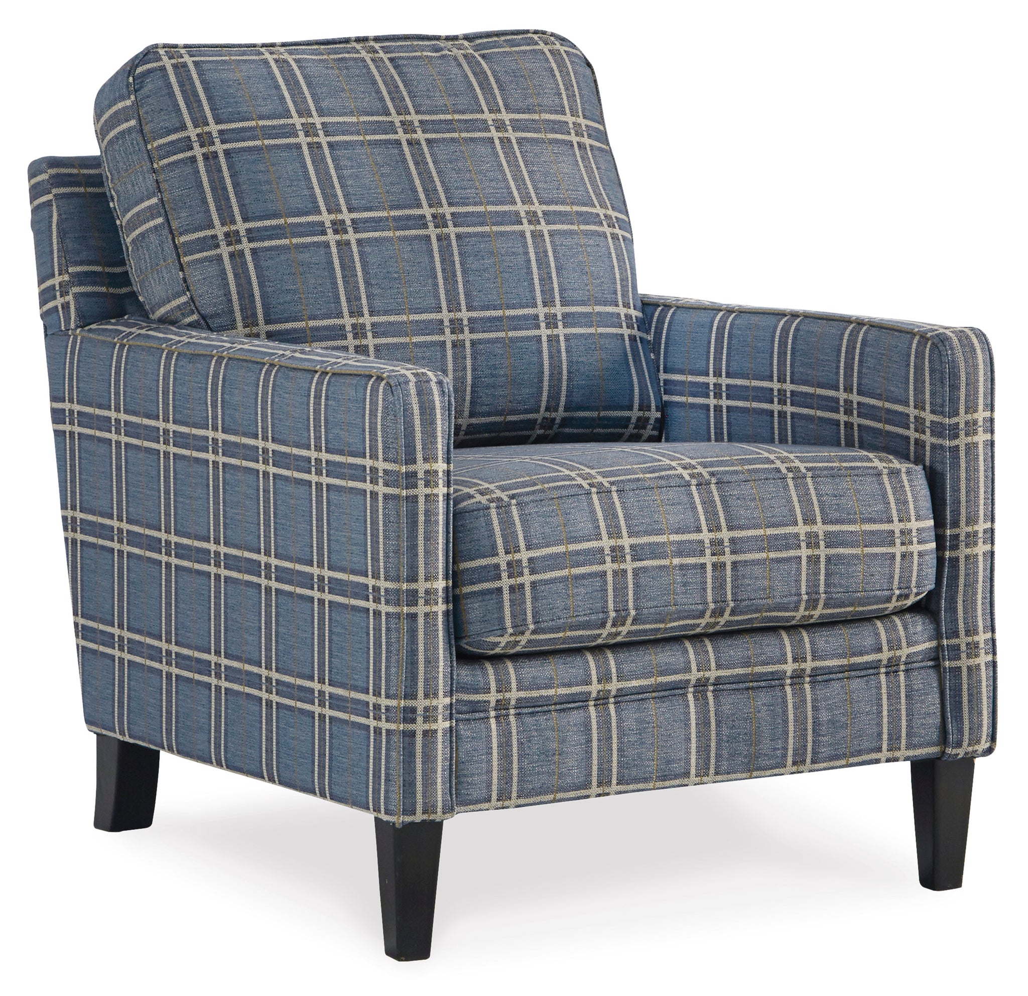 Don’t leave your living room incomplete. Fill the open space with this accent chair. Warm blue hue on the oversized check print is a calming pop of color. Slim track arms make this traditional silhouette more casual and inviting. Plush back and seat cushions are an absolute pleasure to sit in. Alone or paired with other upholstery, this chair is a class act.