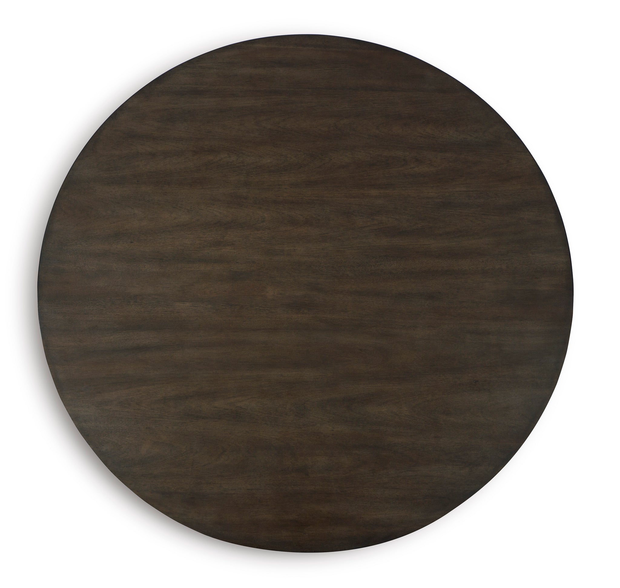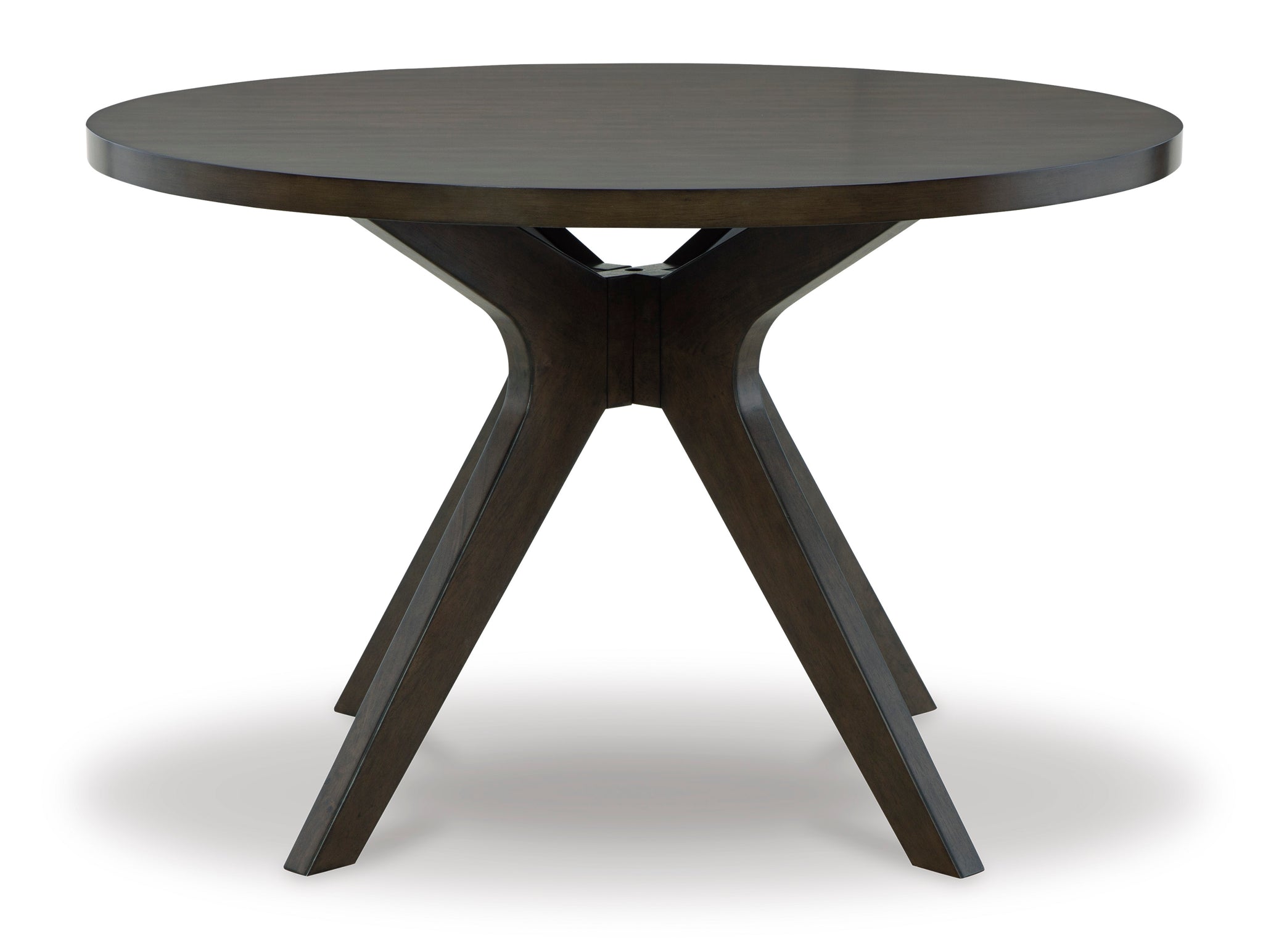 A beautiful balancing act. Clean lined and simply striking, this round dining table merges a high-style look with a side of easygoing attitude. Wowing with visual texture, the pedestal base with four tapered, splayed legs offers an architectural look with unique appeal. What a delicious choice for a casual contemporary dining room upgrade.