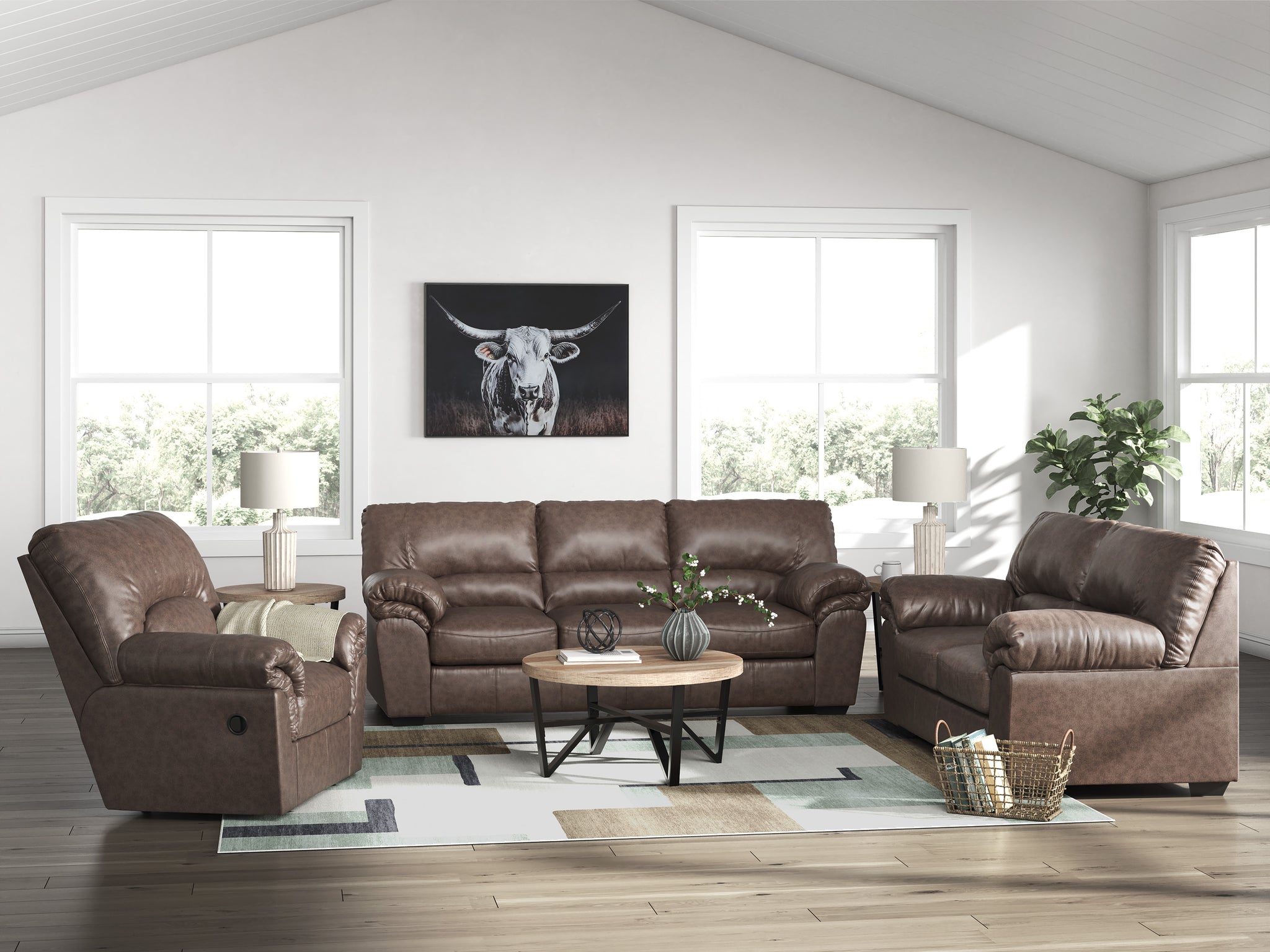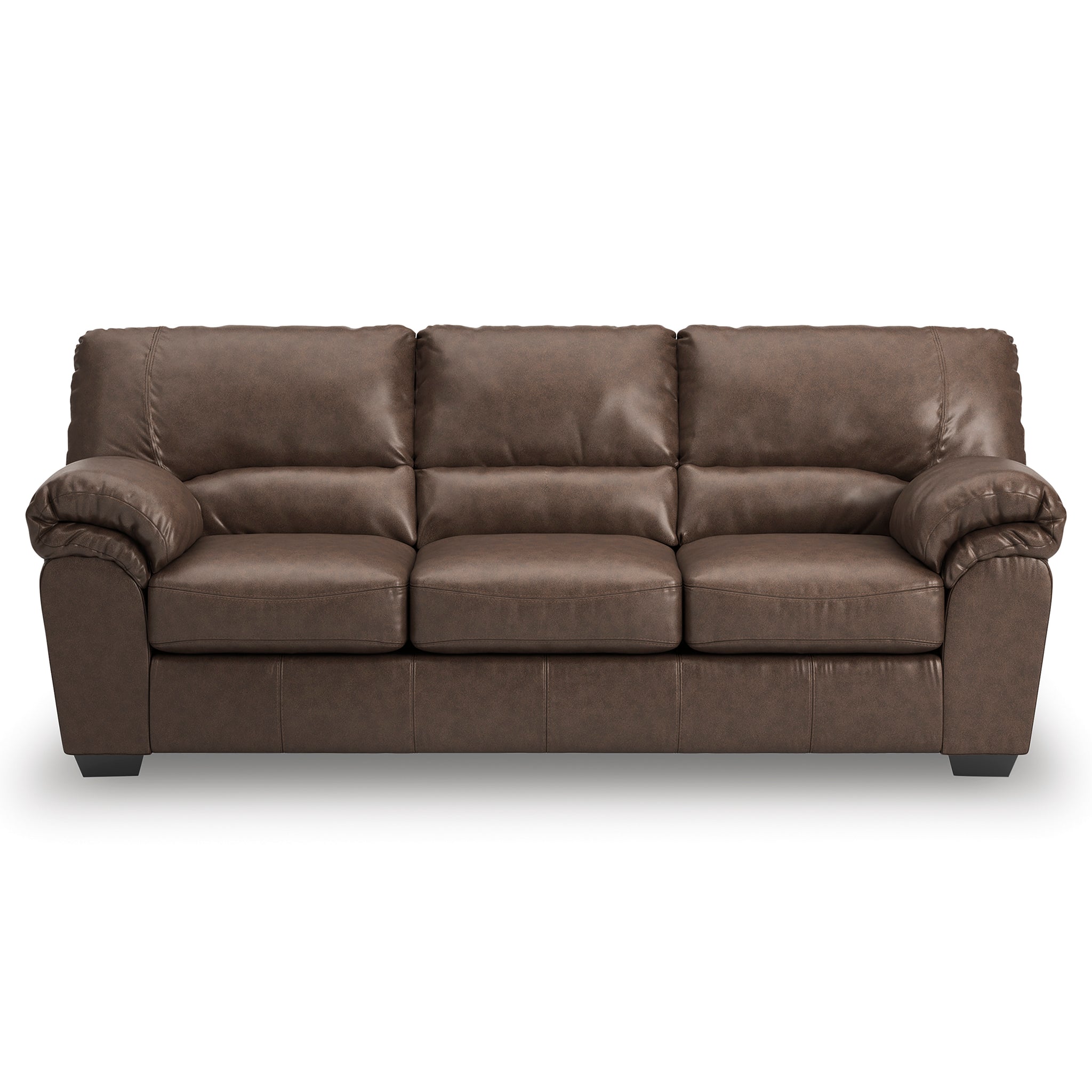 Modern comfort never looked so good. Sporting supremely soft yet durable cushions accented with high-fashion jumbo stitching, this stunning sofa is the ultimate choice in comfortably cool, contemporary style. Its umber-hued faux leather indulges with an upscale feel and wows like the real thing.