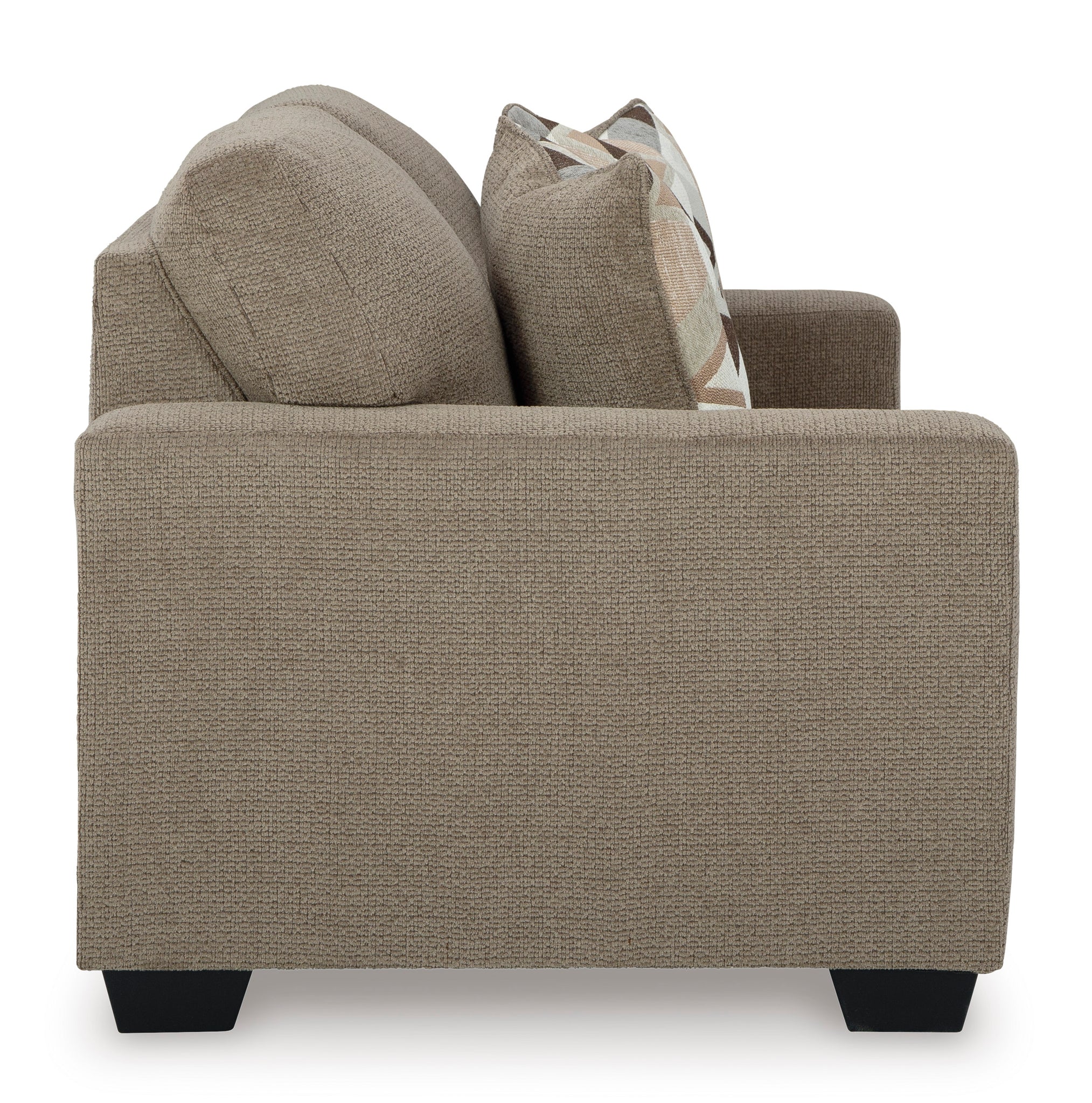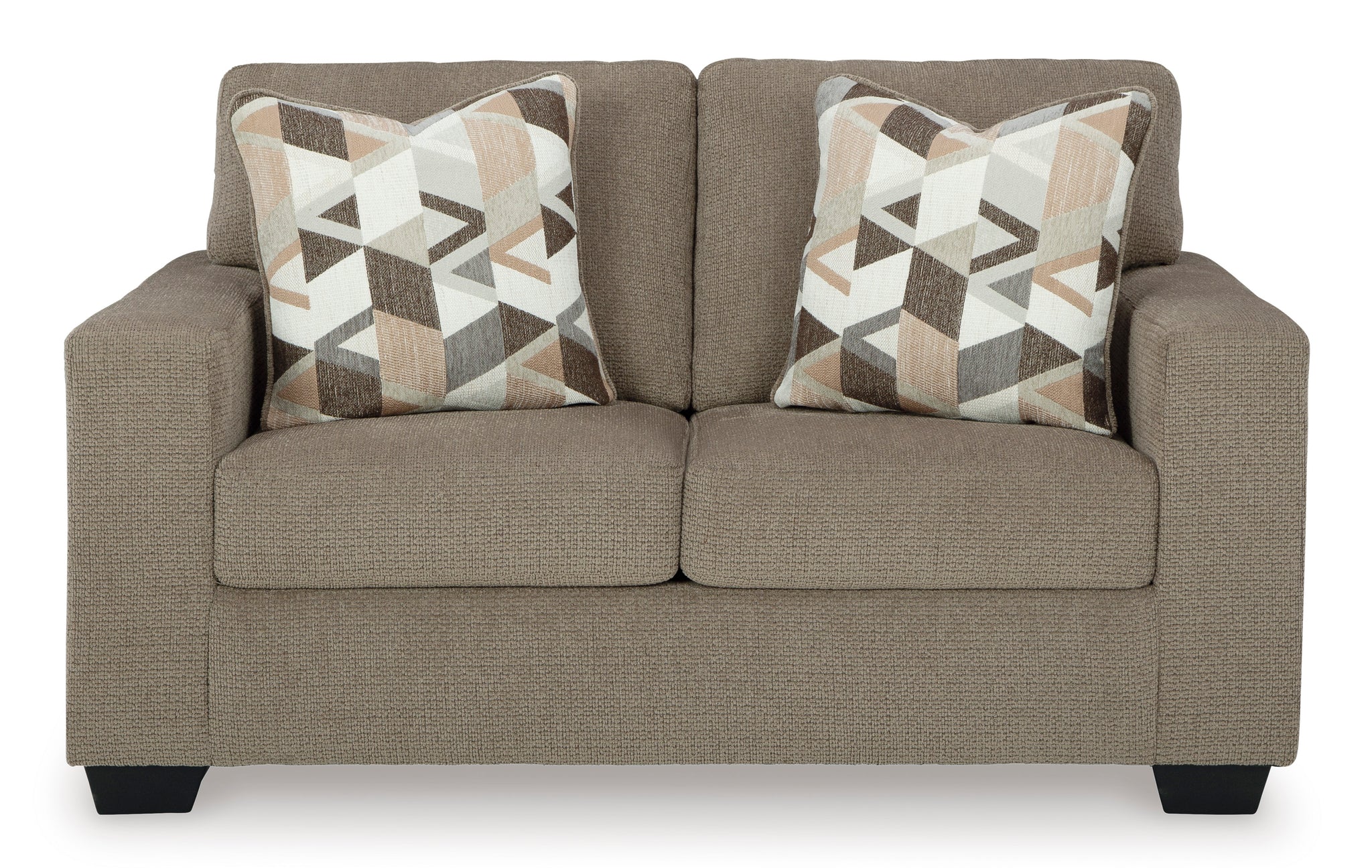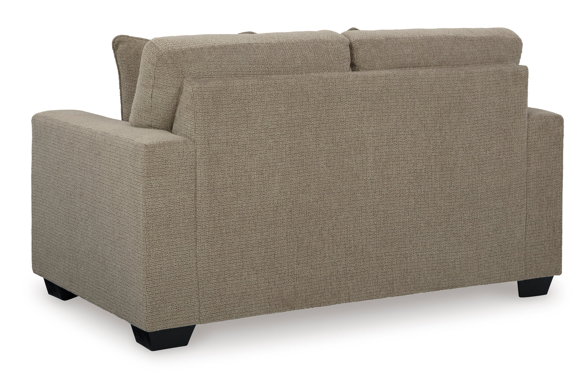 What happens when contemporary design meets plush comfort? Introducing this striking loveseat. Supple woven upholstery, ample cushioning and track arms deliver a chic modern vibe, making it the best seat in the house. All that’s missing is you—and your bestie.
