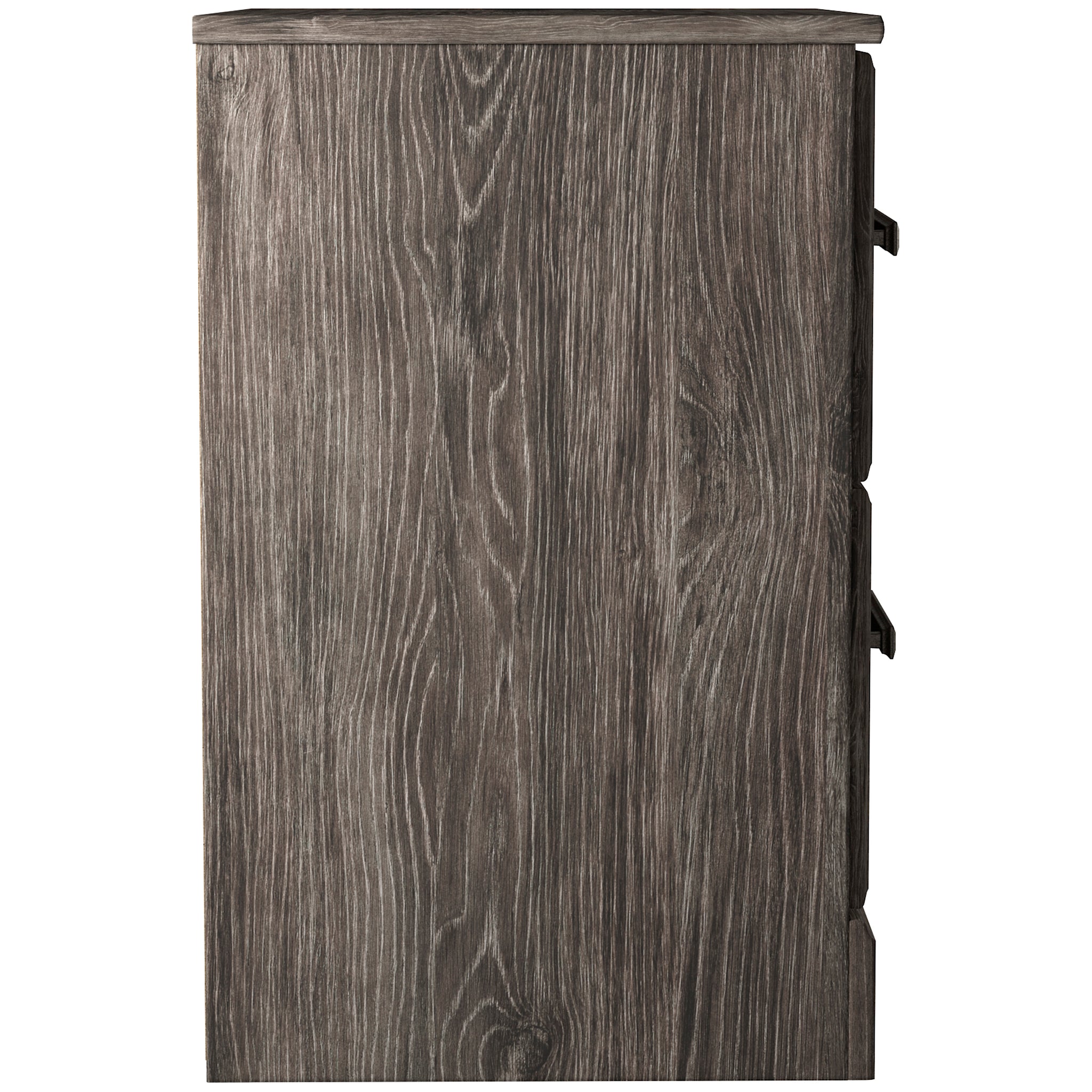 With its clean-lined look and modern attitude, this nightstand is a fresh style awakening. Warm gray hue over replicated oak grain easily complements other furniture finishes. Smooth drawer fronts with antiqued pewter-tone handles completes the aesthetic.
