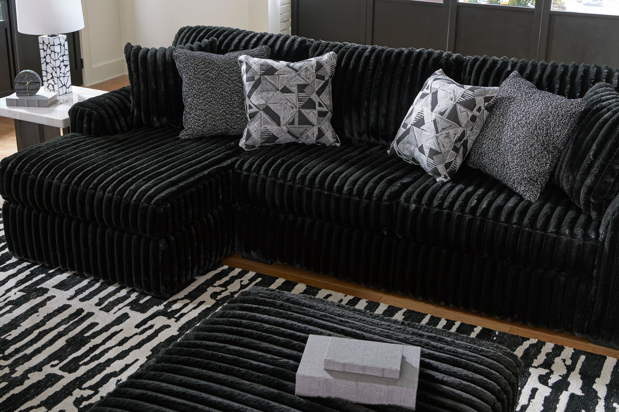 Wrapped in luxuriously soft jumbo corduroy, the Midnight-Madness sectional sofa with chaise takes cozy and inviting to a higher level. This sumptuous piece is perfect for unwinding after a long day, with exceptionally textured cushions that deliver pure indulgence. Now all you have to do is kick back, sink in and relax.