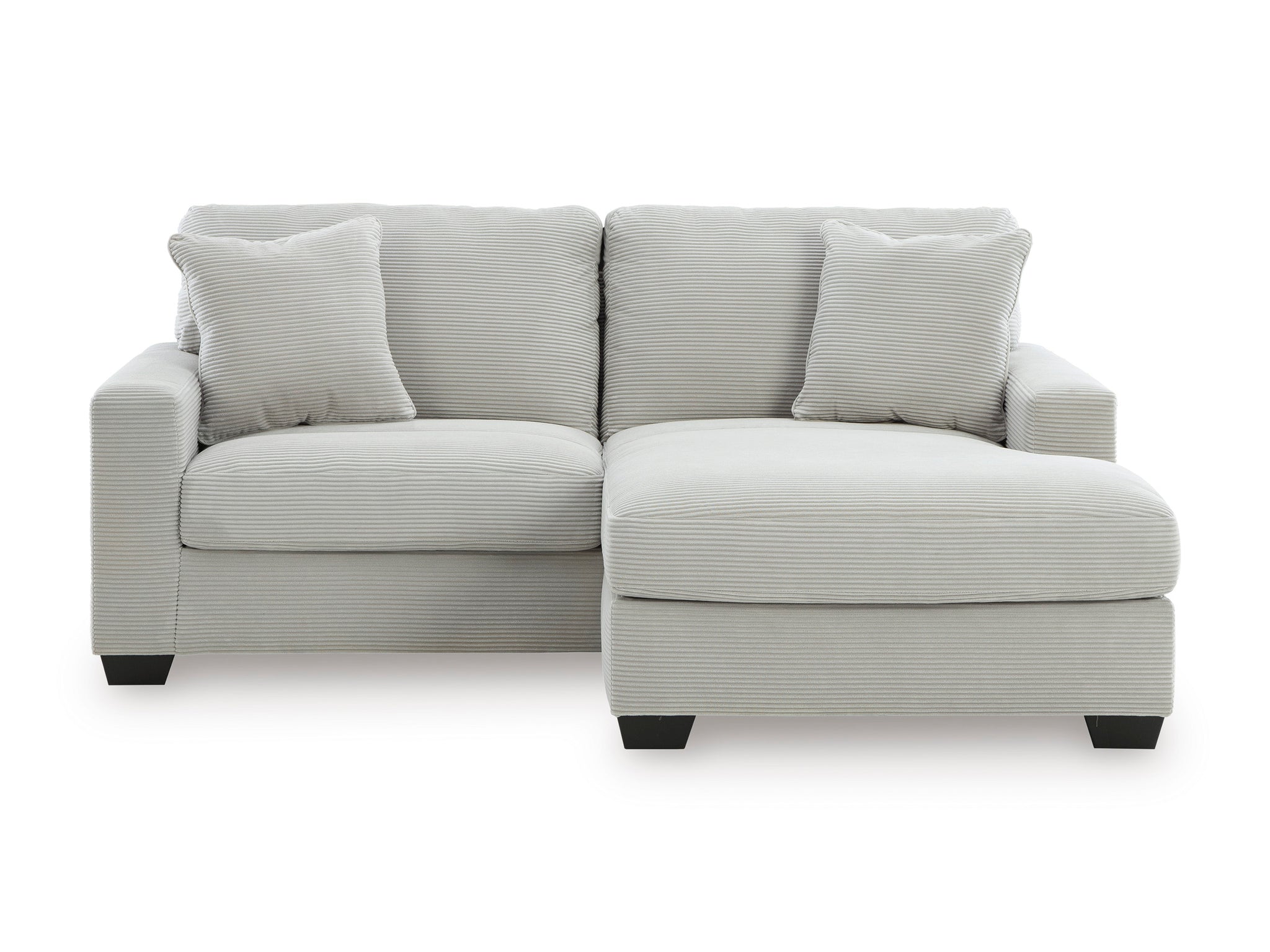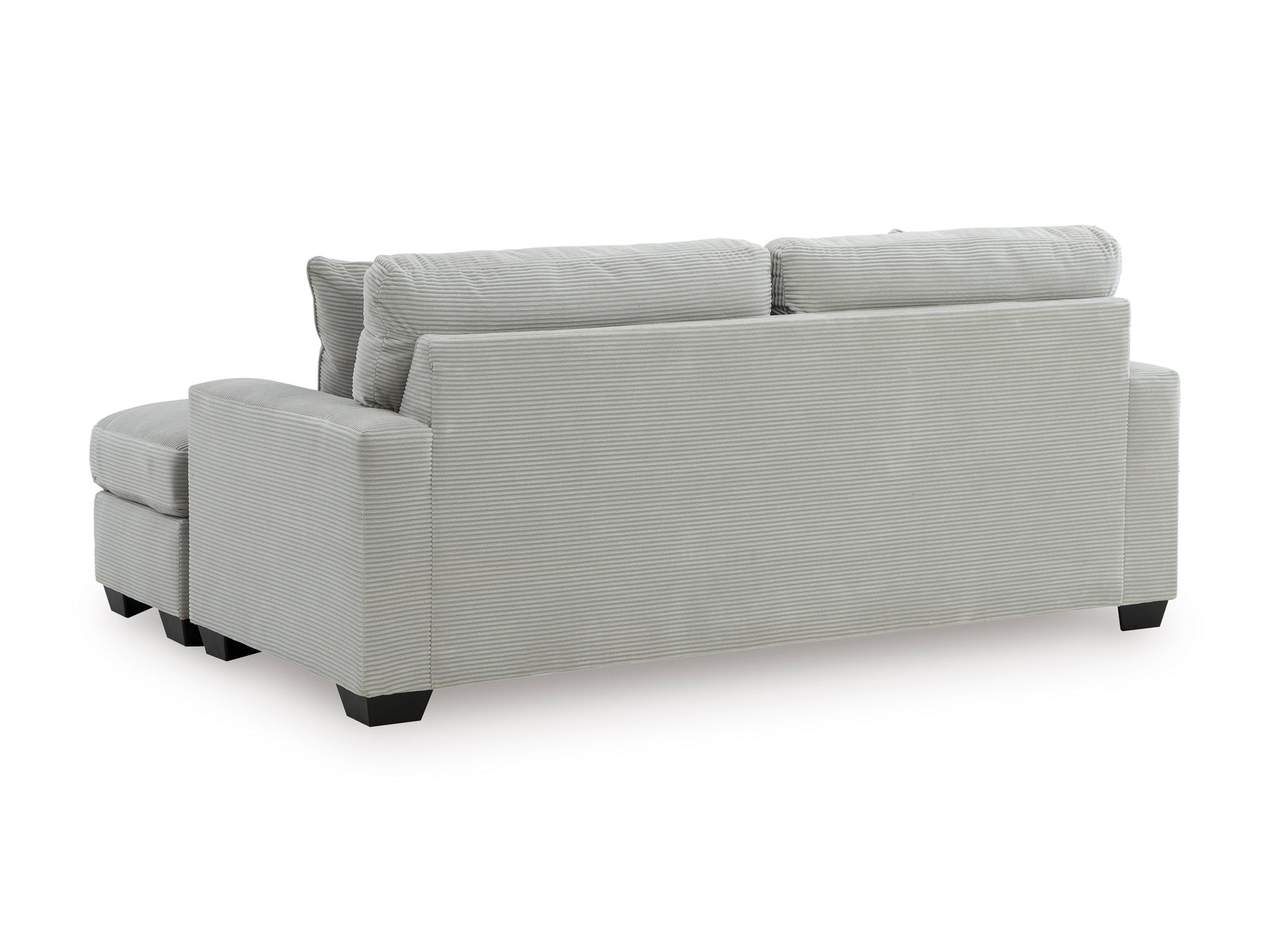 The crisp neutral hue and striking design details of this sofa chaise create a living room that expertly reflects your modern taste. For irresistibly cool textural appeal, the ultra-soft fabric is enhanced by a small-scale corded look. With a clean-lined silhouette complete with track arms, this sofa chaise allows you to take a trend-right approach to everyday living.