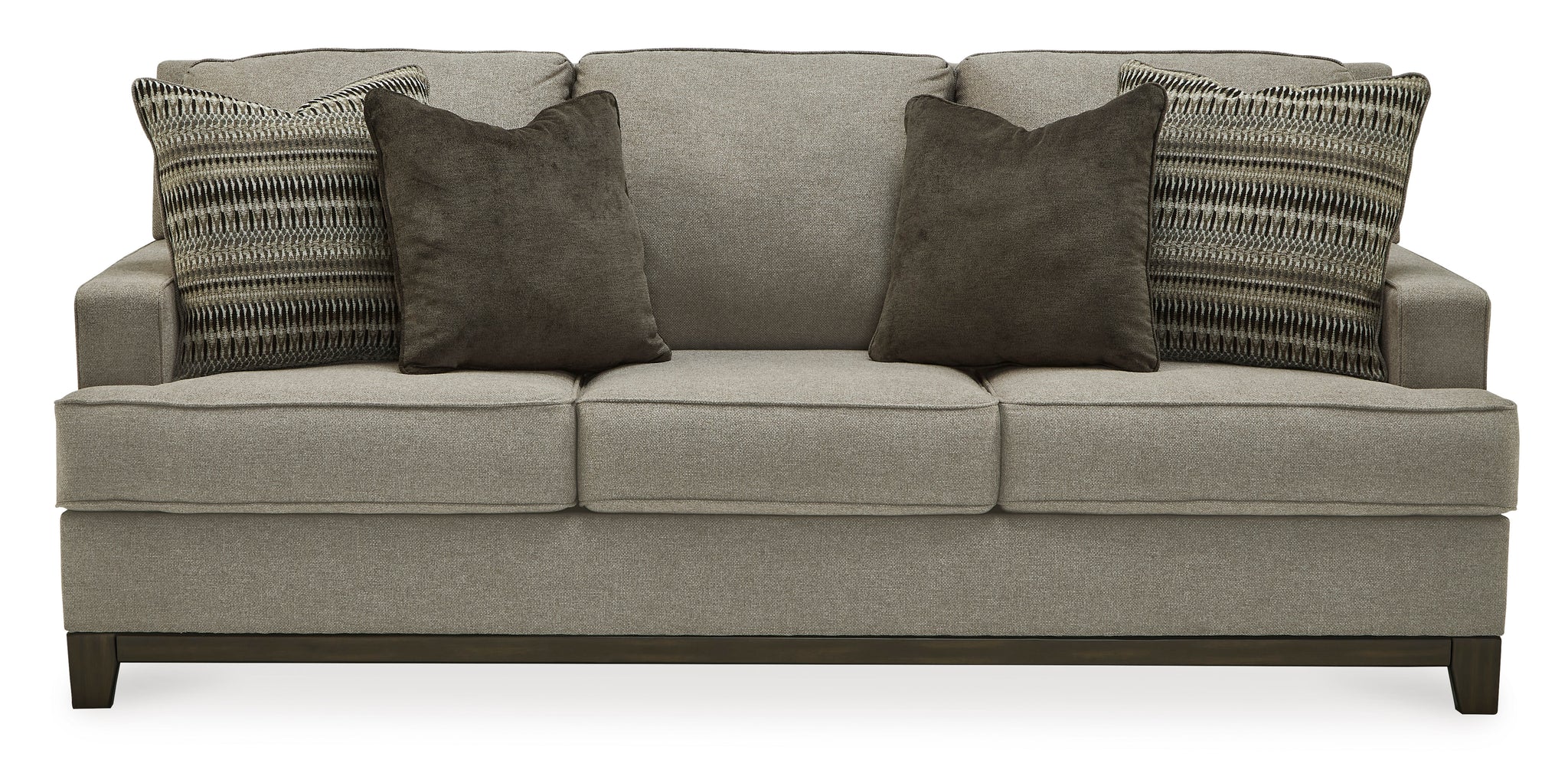 Whether your style is American classic, contemporary or an eclectic mix, this beautifully versatile sofa is sure to look right at home. Distinctive elements include an exposed rail, designer accent pillows and decadent woven upholstery in a rich neutral shade inspired by tailored menswear.
